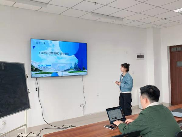 张盼同学分享的是美国知名公共行政学家登哈特夫妇的著作《新公共服务:服务而不是掌舵》一书,他从作者简介、著作背景与目的、主要内容与观点、批判与反思以及现实启示与运用5个方面来讲述自己阅读后的感悟与体会。汇报后,博士研究生宋兆祥对其分享的内容进行点评。宋兆祥同学认为张盼同学对汇报书目的内容有着较为全面的认识和理解,汇报的条理清晰、逻辑严密清晰,聚焦了该书的核心并结合我国的实际发展情况,提出了自己的建议和思考。