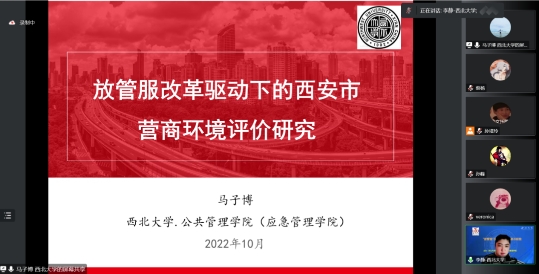 565net必赢客户端马子博讲师作了题为“放管服改革驱动下的西安市营商环境评价研究”的的主题报告。马子博讲师的汇报分为五个部分,第一部分是问题的缘起,他分析了优化营商环境的具有的四点积极作用,并对西安市近年来营商环境排名变化进行了分析;第二部分是营商环境的内涵:放管服改革是视角,在这里他从放管服视角阐释了营商环境的内涵和要素;第三部分是西安市营商环境评价指标体系的构建,他主要围绕指标溯源、指标内容、权重确定三点进行了系统讲述;第四部分是西安市营商环境评价:基于主观满意度的模糊综合评价法;在最后一部分,马子博讲师提出了优化西安市营商环境建设的五点建议。