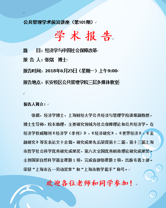 公共管理学术前沿讲座(101期)——“经济学与中国社会保障改革”