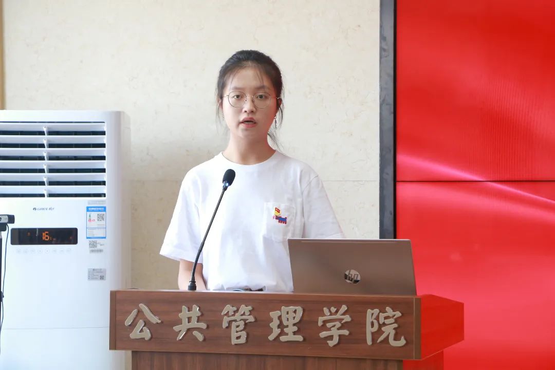 宣誓结束后,两名公管青年向与会同志分享了自己的青春进步路,入党决心说。